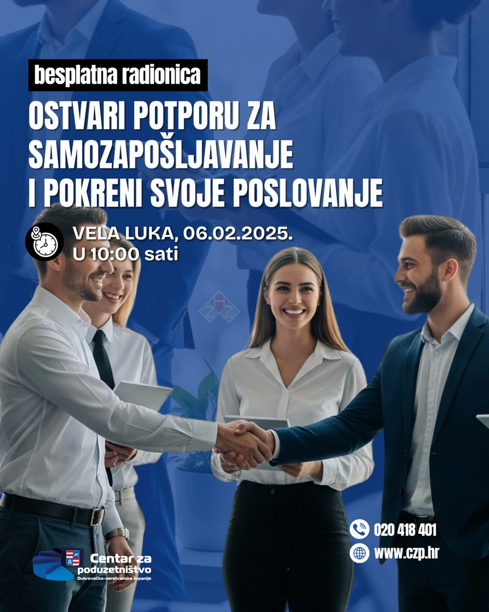Centar za poduzetništvo Dubrovačko-neretvanske županije, u suradnji s Hrvatski zavod za zapošljavanje, organizira besplatnu radionicu za buduće poduzetnike pod nazivom „Ostvari potporu za samozapošljavanje i pokreni svoje poslovanje“, koja će se održati u Veloj Luci.